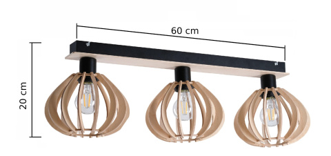 Lampa sufitowa 3xE27 NICOLETA NATURAL AND BLACK 823