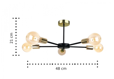 Lampa sufitowa 5xE27 SUN BLACK/GOLD