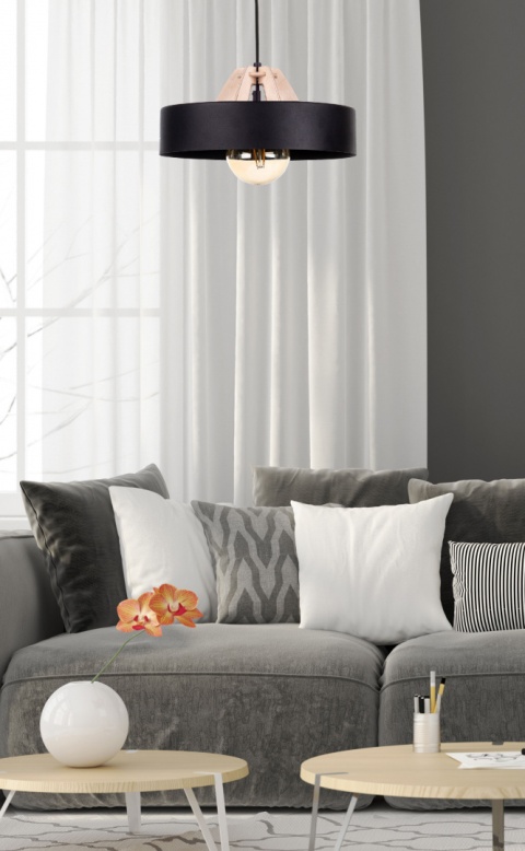 Kolor klosza/abażura: Czarny/Drewno naturalne