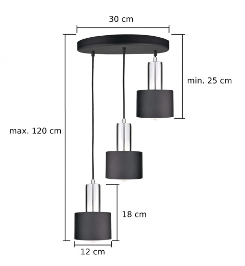 Lampa wisząca 3xE27 LUCE BLACK SILVER