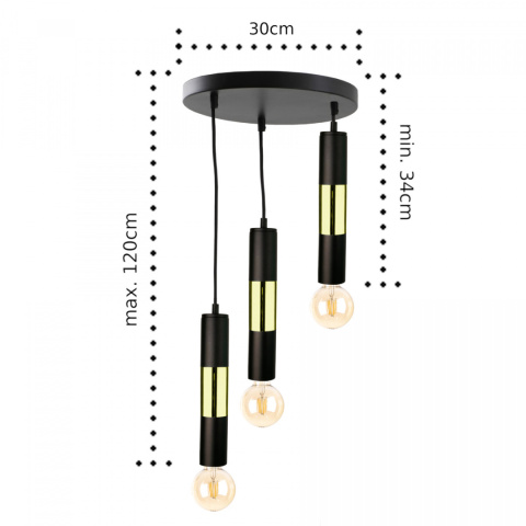 Lampa wisząca 3xE27 MAGNUM BULB BLACK/GOLD