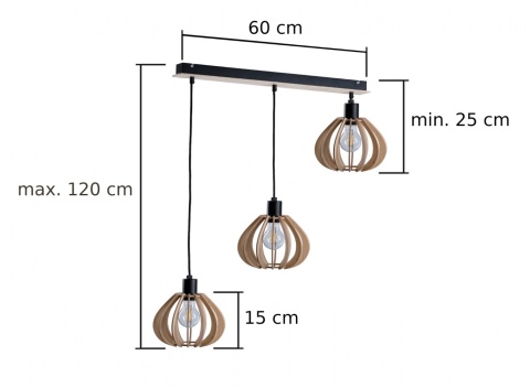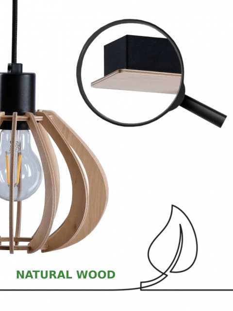 Lampa wisząca 3xE27 NICOLET NATURAL AND BLACK 825