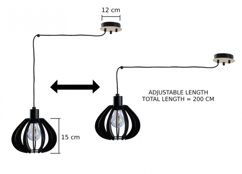 Długość [cm]: SZEROKOŚĆ KLOSZA : 21 DŁUGOŚĆ JEDNEGO PRZEWODU : 200