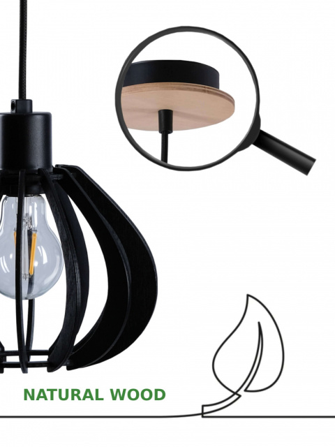 • Lampa wisząca 3xE27 NICOLETA BLACK AND NATURAL 818