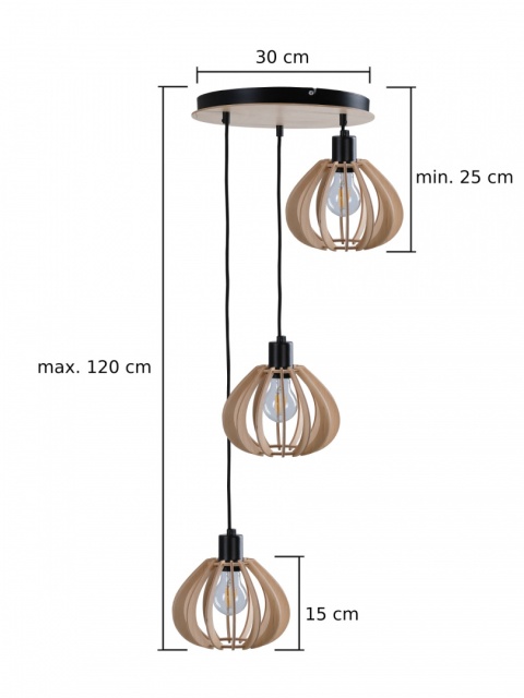 • Lampa wisząca 3xE27 NICOLETA NATURAL AND BLACK 826