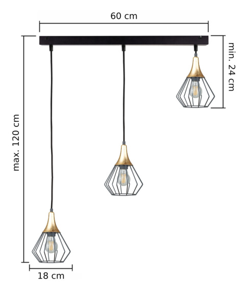 Lampa wisząca 3xE27 SELENE BLACK/GOLD