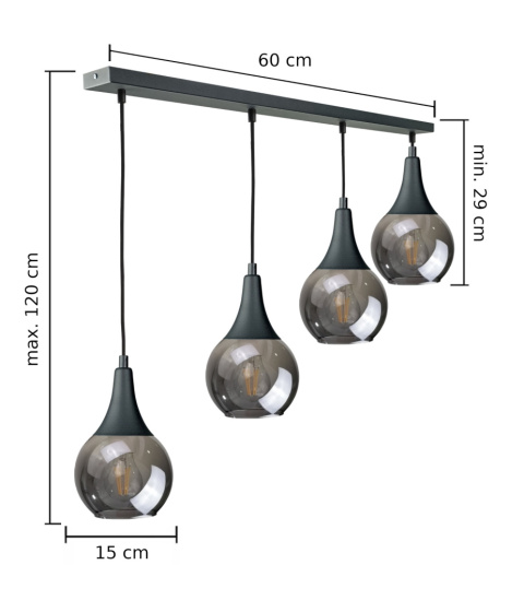 Lampa wisząca 4xE27 LACRIMA SMOKY BLACK