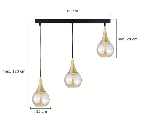 Lampa wisząca 3xE27 LACRIMA HONEY/GOLD
