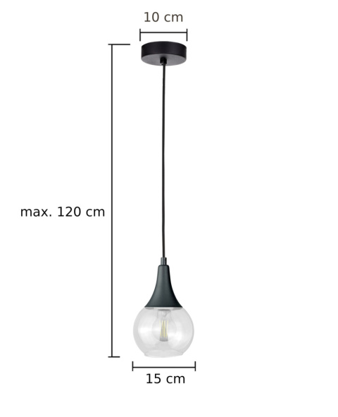 Lampa wisząca 1xE27 LACRIMA CLEAR BLACK