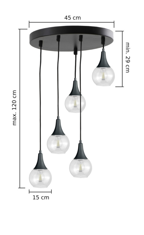 Lampa wisząca 5xE27 LACRIMA CLEAR BLACK