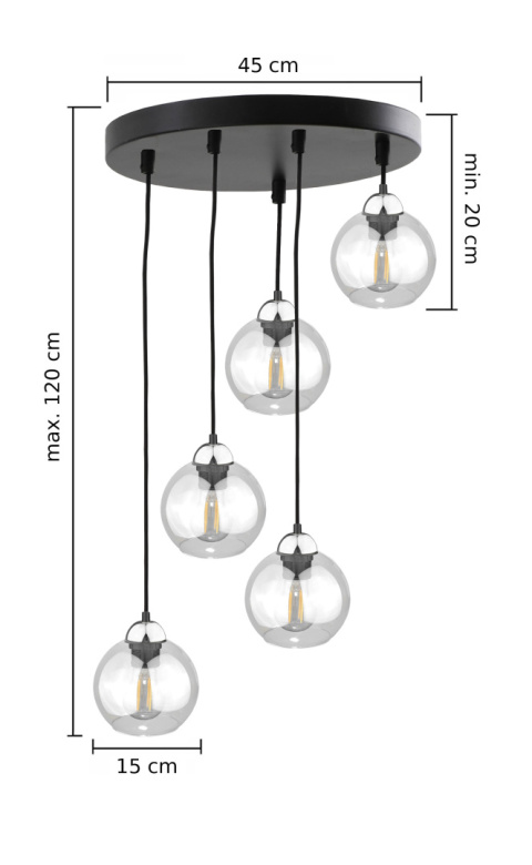 Lampa wisząca 5xE27 MIRAGE BLACK/SILVER