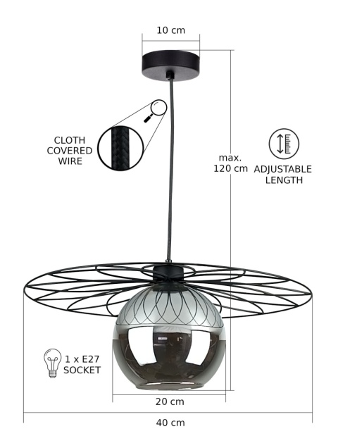 Lampa wisząca 1xE27 FIESTA LONG BLACK/SMOKY