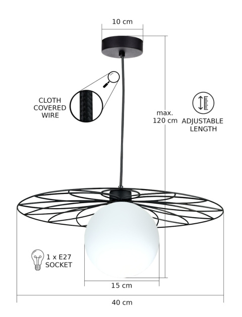 Lampa wisząca 1xE27 FIESTA LONG BLACK/WHITE