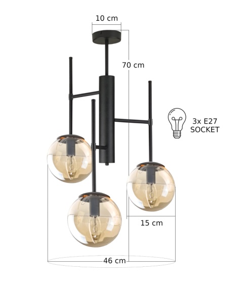 Lampa sufitowa 3xE14 APOLLO AMBER